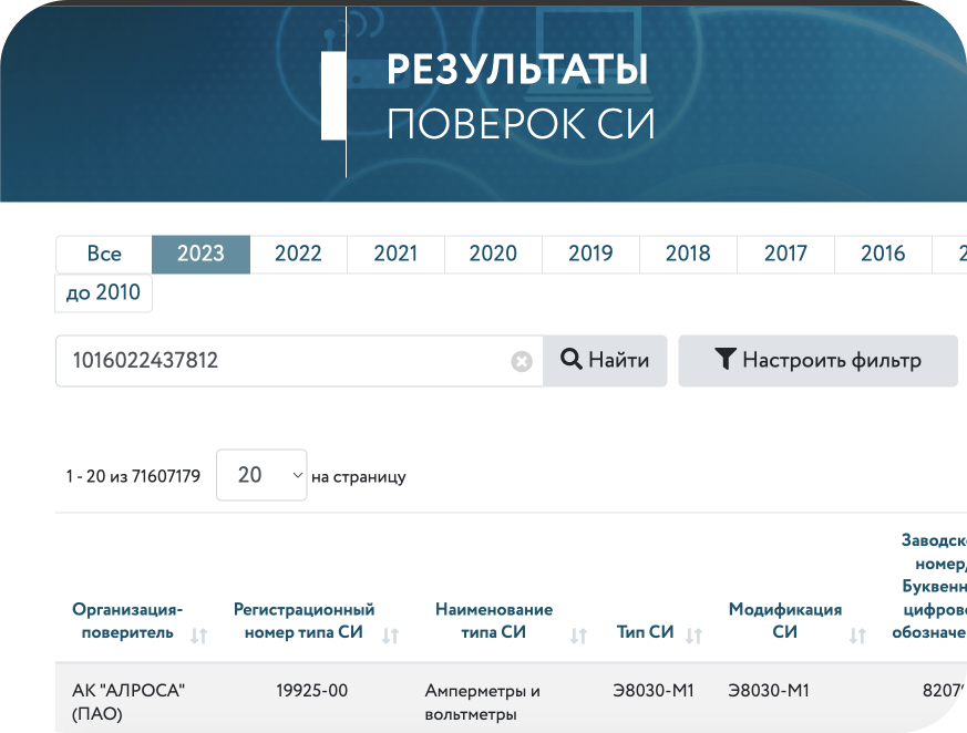 Для проверки результатов перейдите на сайт, выберите год поверки и введите заводской номер поверенного счетчика.